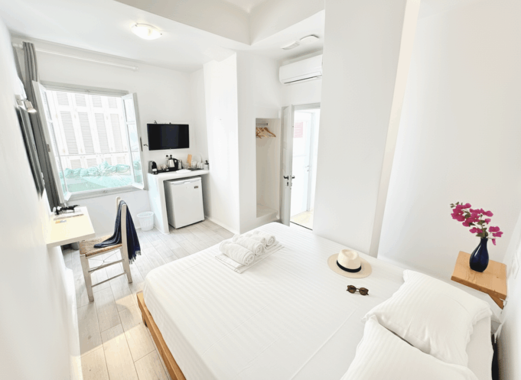 The major advantage of this studio is its unbeatable location. Being so centrally situated in Naxos Chora means you can save time and money on transport. You are near the main port, all major bus routes, and the town center's restaurants and shops, ensuring you have easy access to every part of your Naxos itinerary.